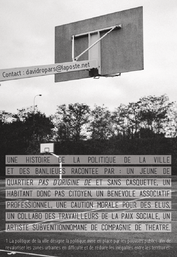 Une histoire de la Politique de la Ville et des BaNlieuES racontEE par : un jeune de quartier pas d'origine DE ET sans casquette, un habitant donc pas citoyen, un bEnEvole associatif professionneL, une caution morale pour des Elus, UN Collabo des travailleurS de la paix sociale, un Artiste subventionnomane de Compagnie de thEAtre.